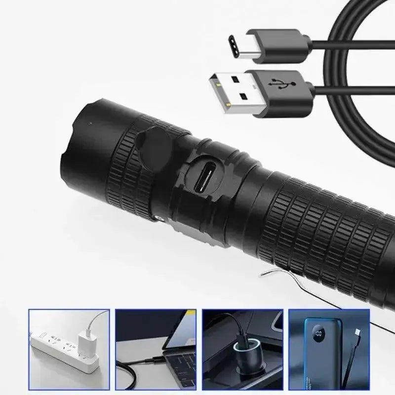 LED de haute qualité L2 et taille compacte de 113 x 25 x 32 mm pour un éclairage puissant et portable. Légère (seulement 50 g), elle se fait à peine remarquer lorsqu’elle est portée. Produit 10 W de puissance avec une portée de 0 à 150 mètres et un faisceau ajustable de large à étroit. Alimentée par une batterie LITHIUM ION de 2000 mAh pour des performances durables. Robuste et élégante avec son corps en alliage d’aluminium. Passez facilement entre différents modes d’éclairage en appuyant simplement sur un bouton.